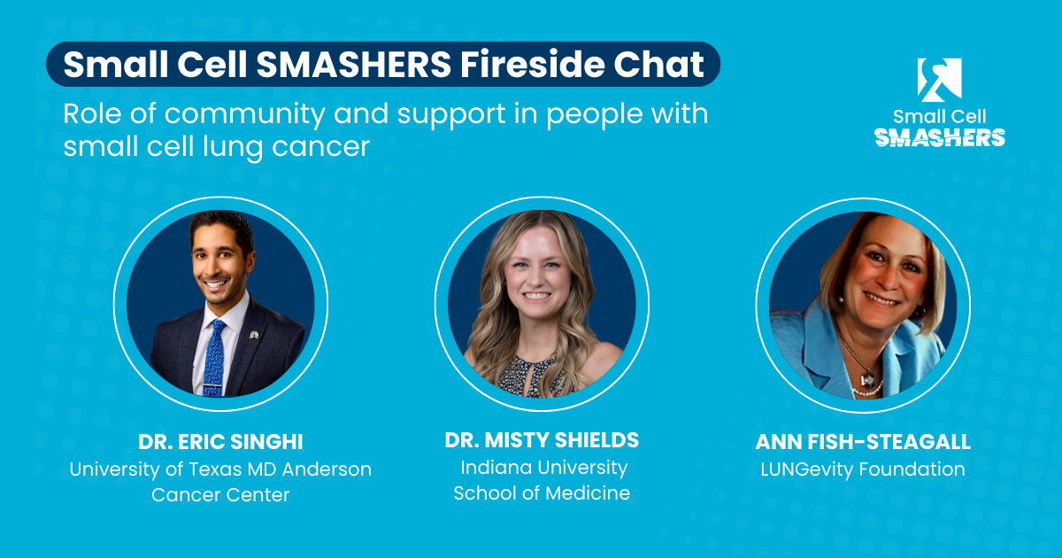 Moderated by Misty Shields, MD, PhD, IU Health, and LUNGevity’s Ann Fish-Steagall, RN, BSN, SVP of Patient Services and Health Care Delivery, the monthly Small Cell SMASHERS series highlights the latest discoveries and breakthroughs for SCLC.